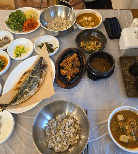 보리밥 청국장 도토리묵 도토리전 잡채 생선 나물등등 푸짐하고 맛깔스러움...