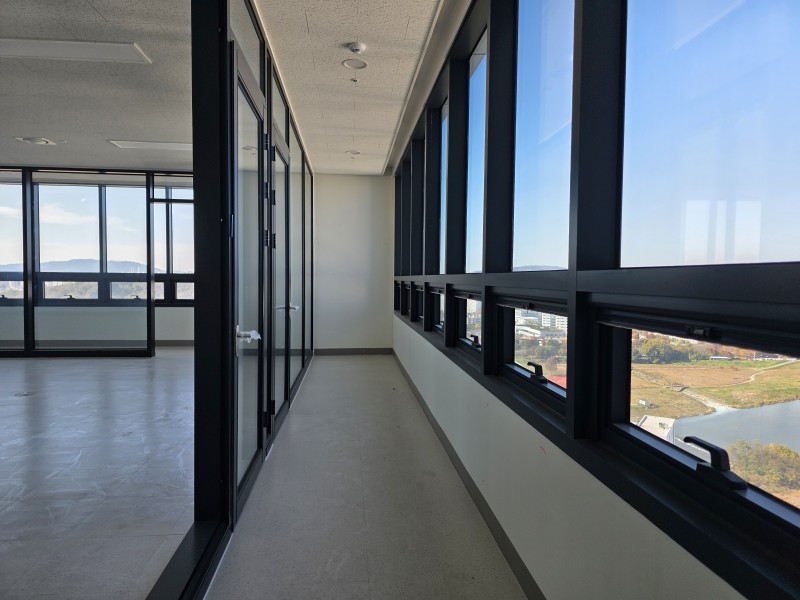 발코니 면적은 사무실의 면적과 별개로 들어가기 때문에 발코니 부분은 회사의 창고나 탕비실 휴게실 등으로 공간 활용하기 좋으며 영산강을 한눈에 볼 수 있는 리버뷰를 만끽하실 수 있는 공간입니다. 채광 또한 잘들어오고 창문이 3개가 있어 환기 시킬시에도 공기 순환이 잘됩니다.